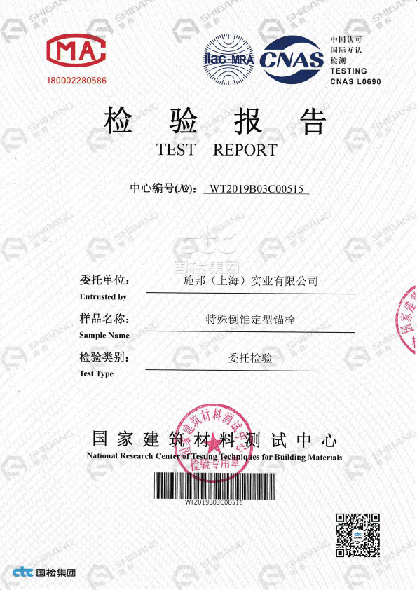 施邦研發(fā)出了特殊倒錐定型錨栓的專用植筋膠