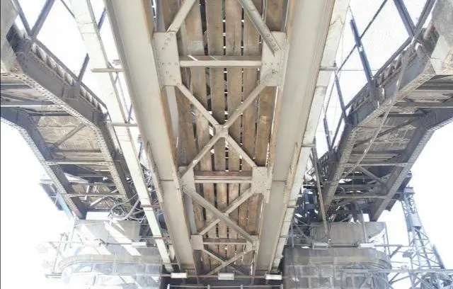 姑溪河鐵路大橋是寧安鐵路段的重要橋路段,在姑溪河大橋旁邊,與其并列,比該橋矮了十幾米,全長上千米,分約100多個梁段,整體為鋼制空腹的桁梁結(jié)構(gòu)。這種鋼制空腹桁梁結(jié)構(gòu)的優(yōu)點是洪水可從橋的空腹部位隨意流泄,既能保障暢通又減少了阻力,但這種橋的整體結(jié)構(gòu)質(zhì)量較輕,一旦超過大橋的封鎖水位,水漫至橋面阻力將會成倍增大,危險就相應(yīng)的到來,必須靠增加重量來確保大橋的穩(wěn)定性,防止被洪水整體沖走。