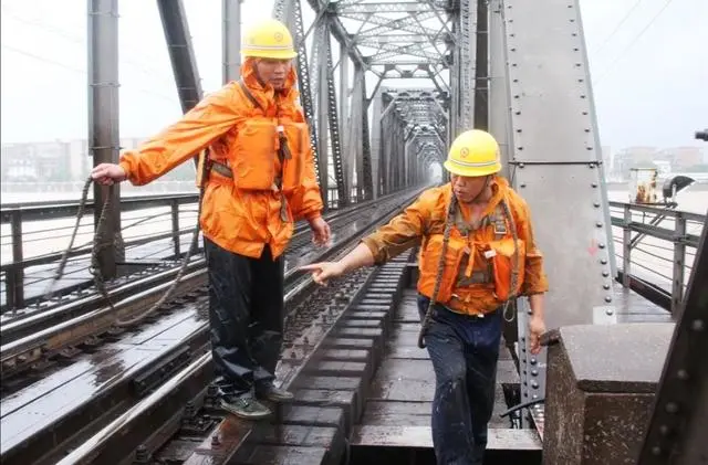 2020年南方暴雨成災(zāi),致使河湖水位猛漲,多地洪水泛濫,汛情來勢洶洶。7月10日晚,受近期強降雨影響,安徽馬鞍山姑溪河大橋水位暴漲,超警戒值,最高水位達9.75米。7月11日11時許,中國鐵路上海局集團公司蕪湖工務(wù)段實施”重車壓梁”,增加橋梁自重,防止洪水沖垮橋梁。據(jù)蕪湖工務(wù)段介紹,壓梁車有66輛,共計5000噸。