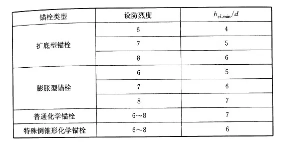 錨栓最小有效錨固相對(duì)深度hef,min/d